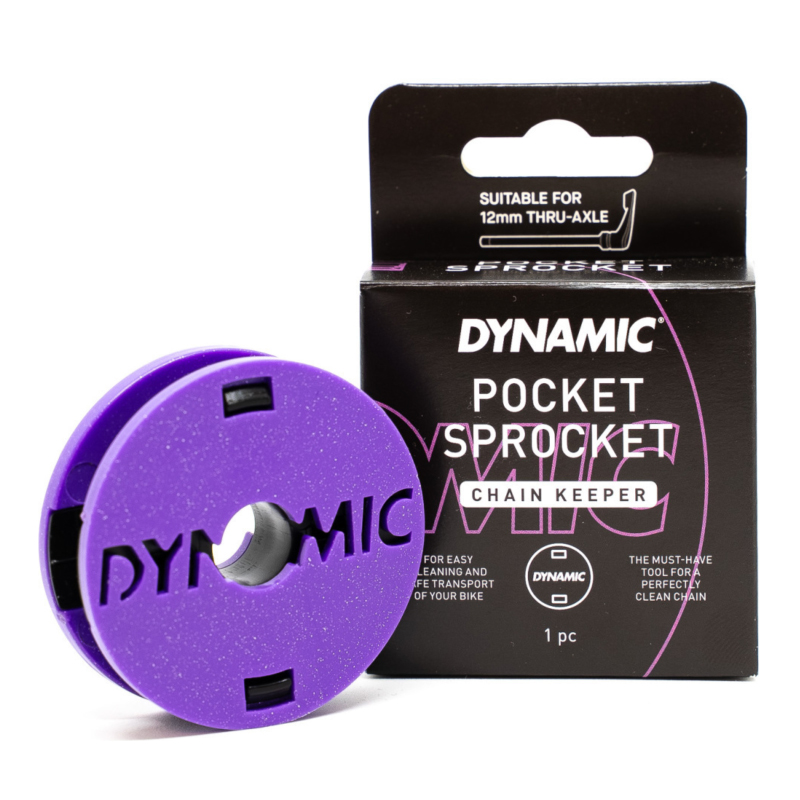 Rengøring af din drivlinje er en leg med Pocket Sprocket. Pocket Sprocket leveres i tre dele. Klik dem sammen, og du kan bruge Pocket Sprocket med det samme. Du finder instruktionerne på indersiden af emballagen. Skub blot Pocket Sprocket over din 12 mm gennemgående aksel, sæt kæden i rillen, og rengør eller smør din kæde, klinger og gearskifter med lethed.
