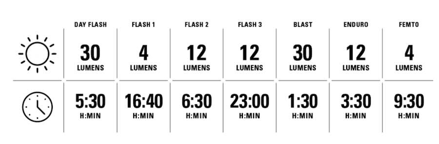 Otte kraftige LED-emittere tilbyder topsynlighed og syv udgangstilstande, inklusive en blitztilstand i dagtimerne (op til 30 lumen) og vores vidvinkeloptik for op til 270 graders synlighed.