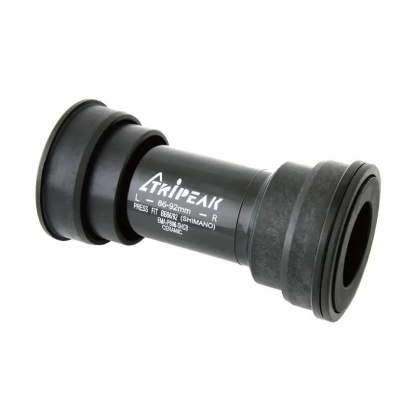 Tripeak Pressfit BB86/92 – Shimano passer til en ramme med 41 mm box diameter og en bredde på 86-92 mm. Den kombinerer PF+GF komposit skåle og G5 keramiske lejer (versionen med keramiske lejer – findes også med stållejer) for en let, robust konstruktion og lav friktion, hvilket giver jævn og effektiv kræftoverførsel.