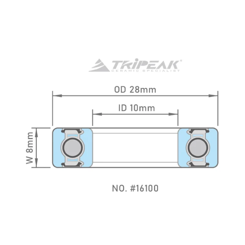 Tripeak lejer 16100 er high precision stållejer i dimensionen 10 x 28 x 8 mm.