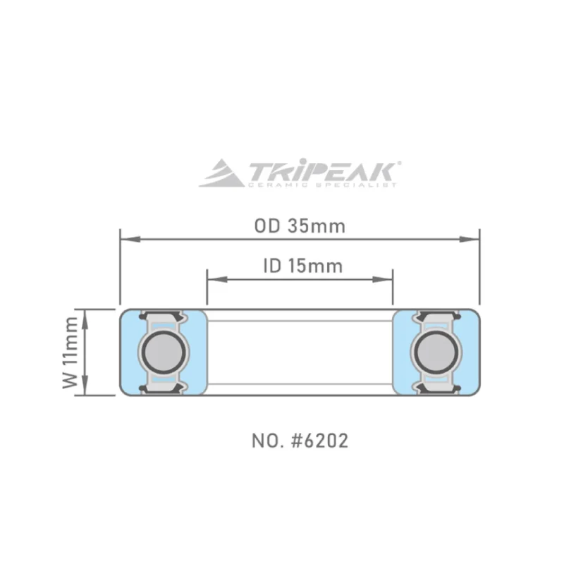 Tripeak lejer 6202 er high precision stållejer i dimensionen 15 x 35 x 11 mm.