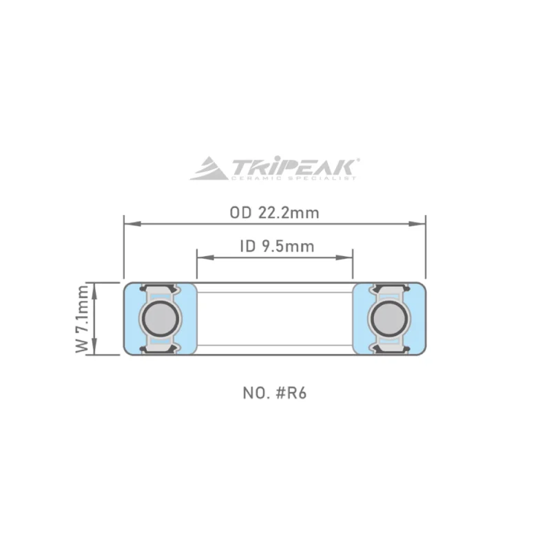 Tripeak lejer R6 er lejer i dimensionen 9,5 x 22,2 x 7,1 mm.