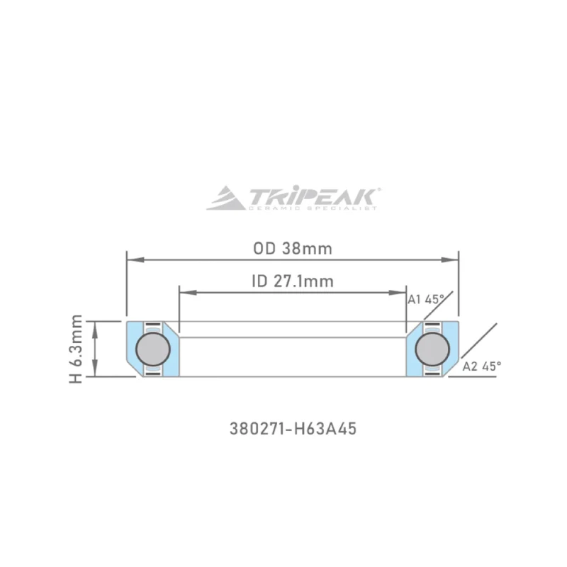 Tripeak styrfittingsleje 38 x 27.1 x 6.3 – 45/45
